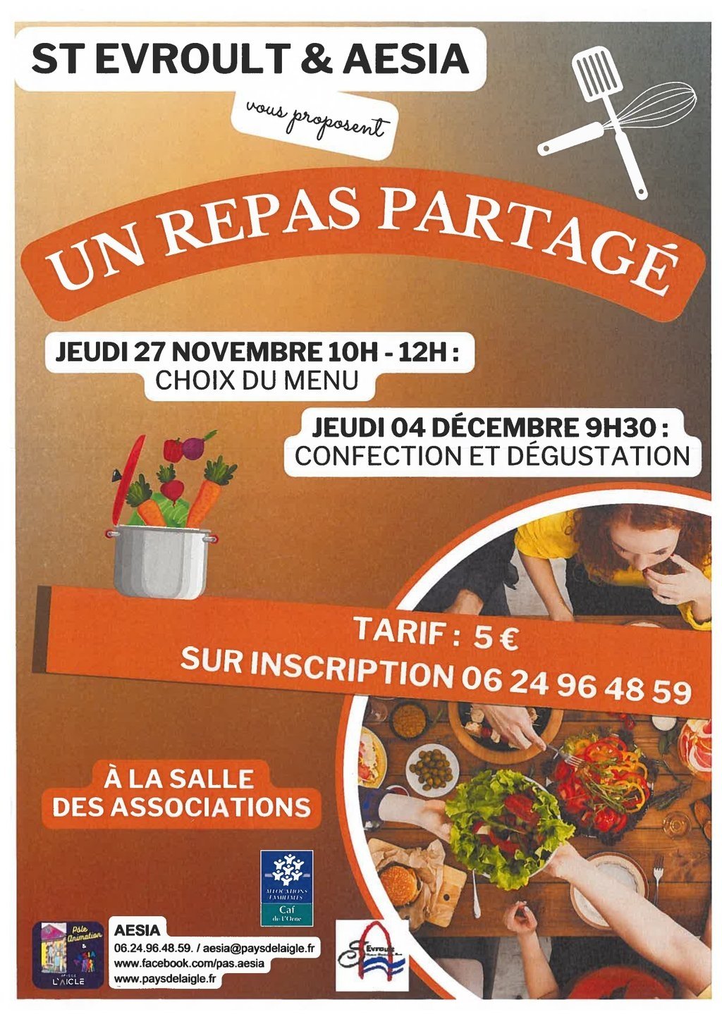 - jeudi 27 novembre 2025 de 10h à 12h : choix du menu